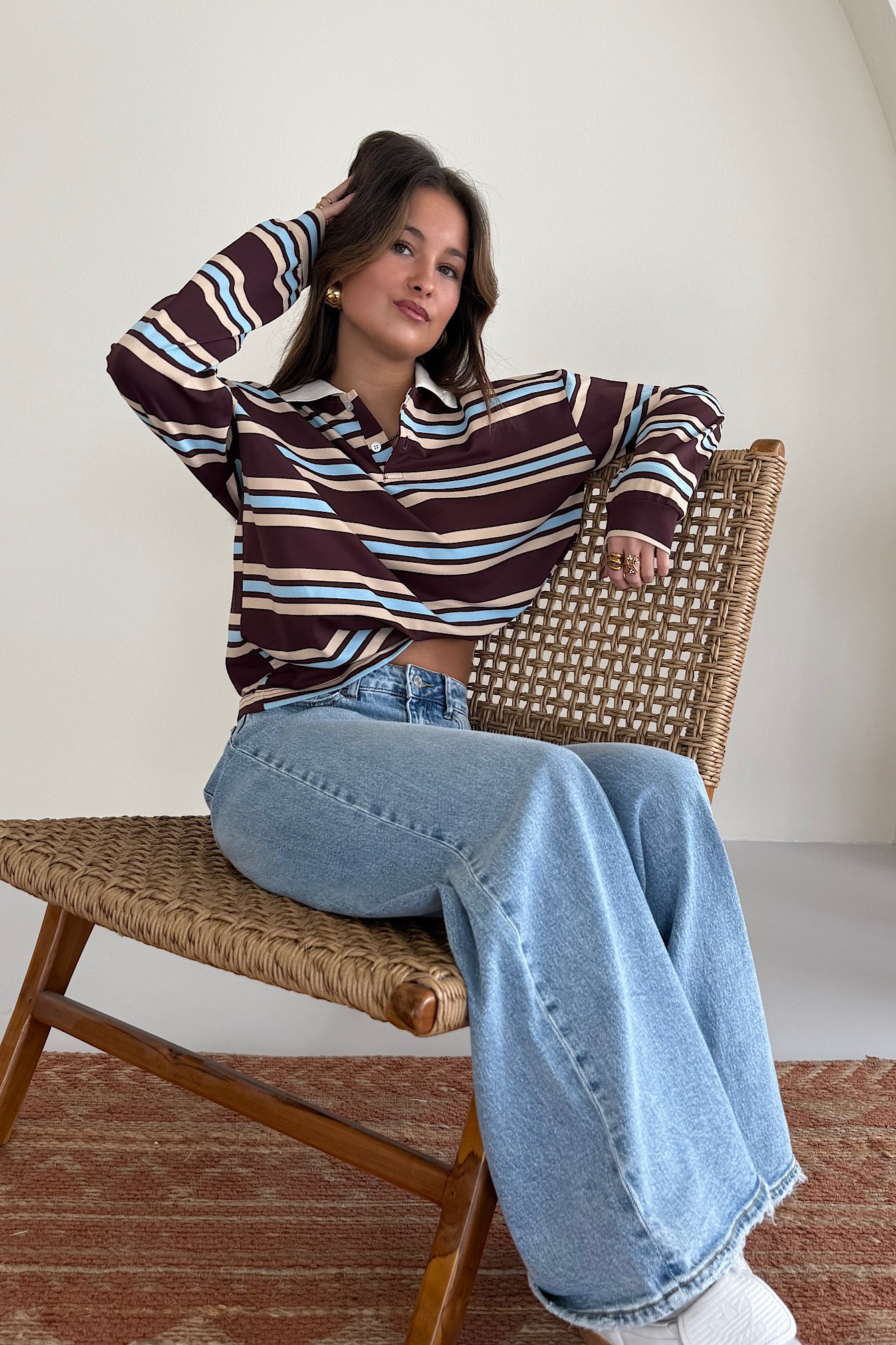 Deze polo trui met horizontale strepen heeft een tijdloze en sportieve uitstraling. De kraag met knopen geeft het ontwerp een nette, veelzijdige touch, waardoor je hem zowel casual als chique kunt dragen. De rechte pasvorm zorgt voor een comfortabele fit en de lange mouwen maken de trui perfect voor koelere dagen. Combineer hem eenvoudig met een jeans of chino voor een stijlvolle, alledaagse look.