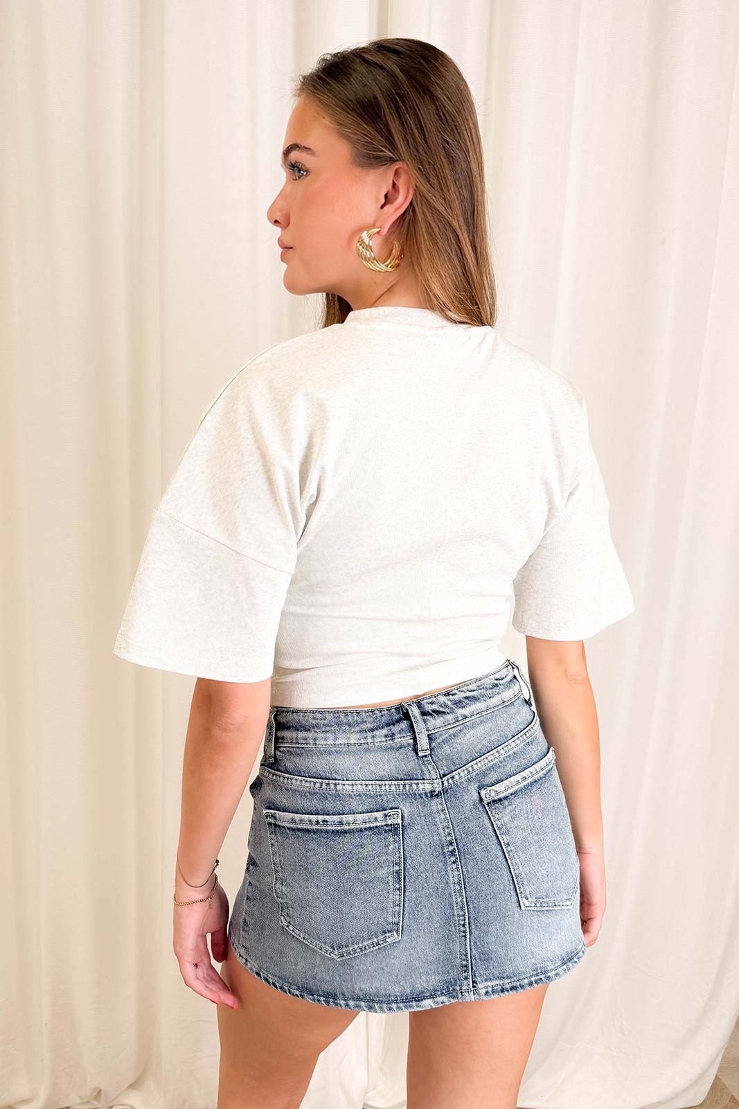 Deze lichtgrijze redefined top combineert stijl met een comfortabele pasvorm. De top sluit mooi aan in de taille voor een flatterend silhouet en heeft korte, losse mouwen die zorgen voor een luchtige en vrouwelijke look. Het minimalistische ontwerp en de zachte grijstint maken deze top perfect voor elke look.