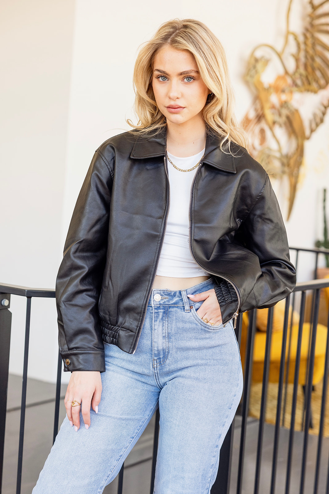 Deze jack in PU zorgt voor een verfijnde touch. De ritssluiting aan de voorkant zorgt voor een moderne afwerking terwijl de klassieke kraag een tijdloze charme geeft.