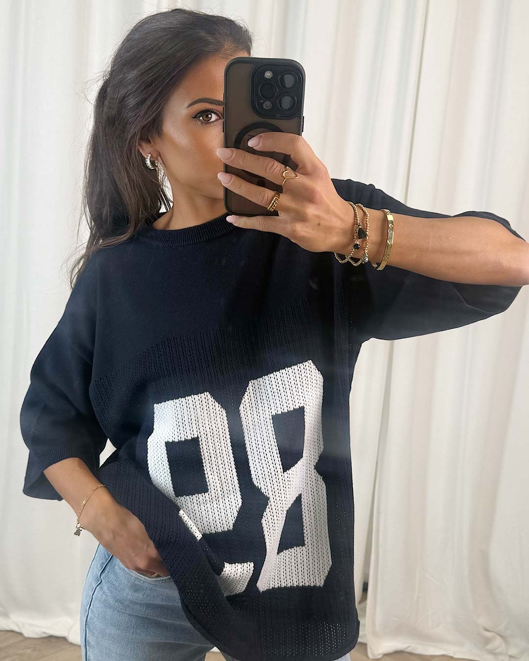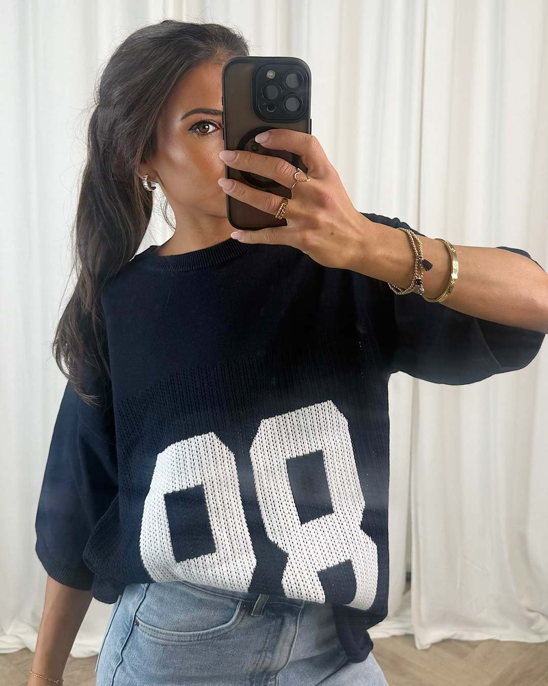 Geef je casual look een sportieve twist met dit navy baseball shirt. Dit stijlvolle shirt heeft een ronde halslijn en een oversized pasvorm. De korte mouwen zorgen voor een luchtig en relaxed silhouet. Het shirt heeft een opvallende witte cijferopdruk, wat het een klassieke baseball vibe geeft. Combineer het met jeans of short voor een edgy vibe. Ideaal voor dagelijks gebruik, festivals of een laid-back weekend outfit.