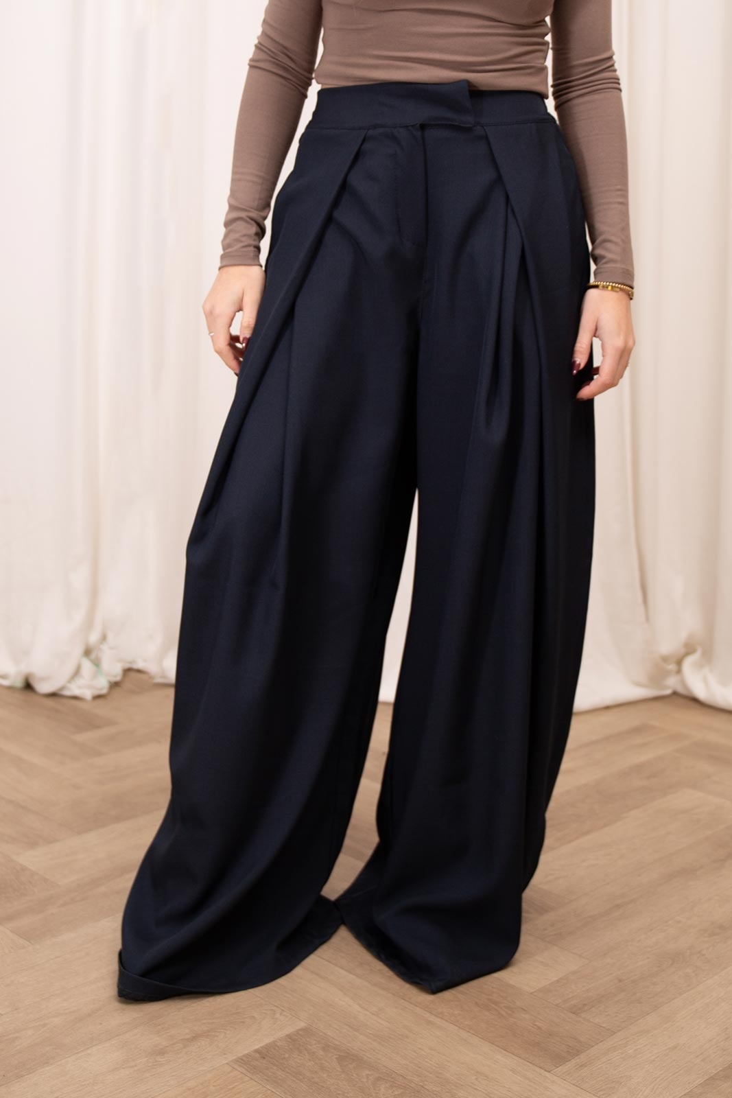 Navy plooien pantalon