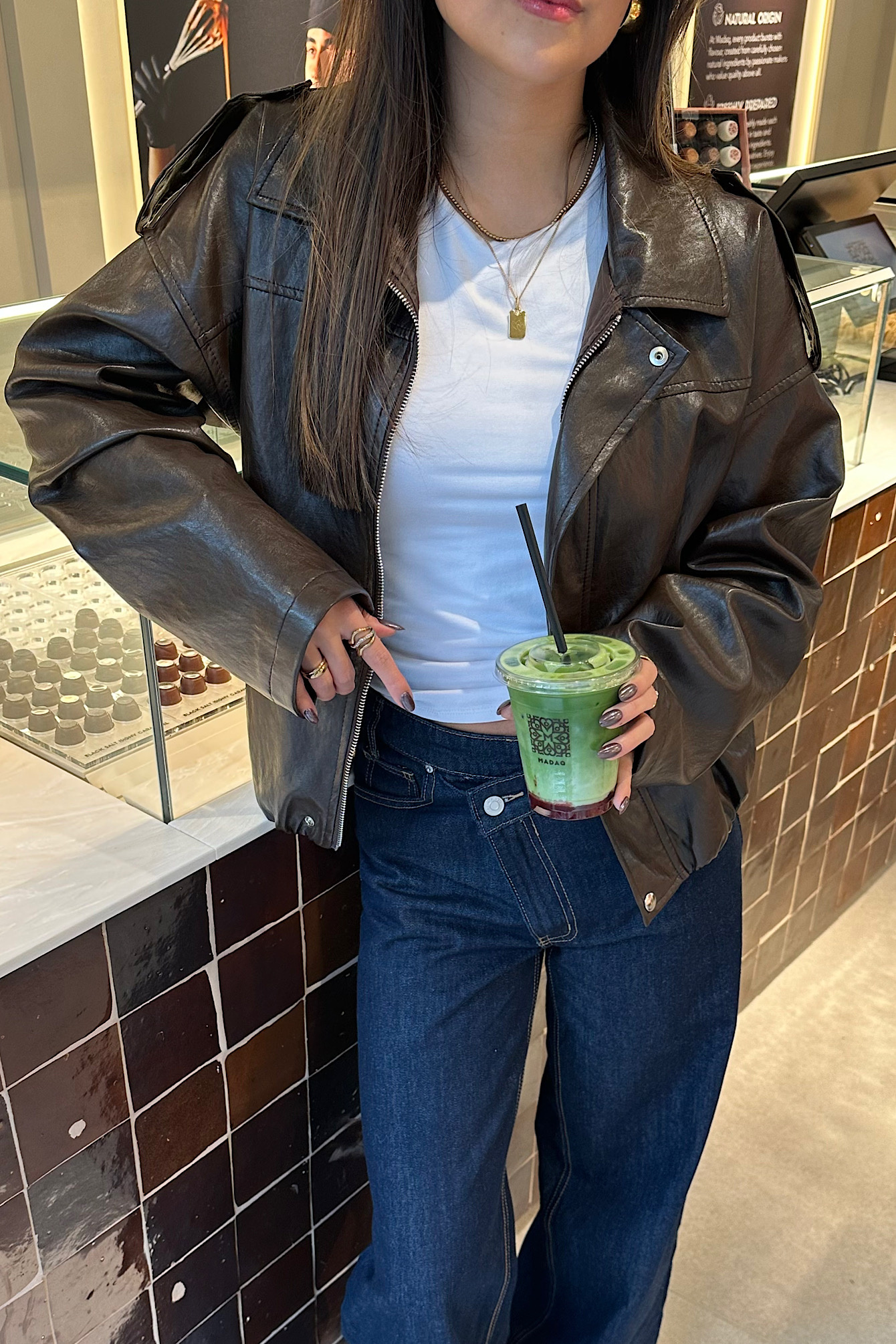 Deze bruine PU jacket met bomber look is een stoere en trendy toevoeging aan je garderobe. Het jack is gemaakt van hoogwaardig PU-materiaal en heeft een comfortabele pasvorm. De ritssluiting aan de voorkant zorgt voor gemak en een moderne uitstraling. De bomberstijl wordt versterkt door het stijlvolle detail met drukknoop op de schouders, wat het jack net dat beetje extra karakter geeft. Perfect te combineren met zowel casual outfits als een meer edgy look, en geschikt voor dagelijks gebruik in elk seizoen.