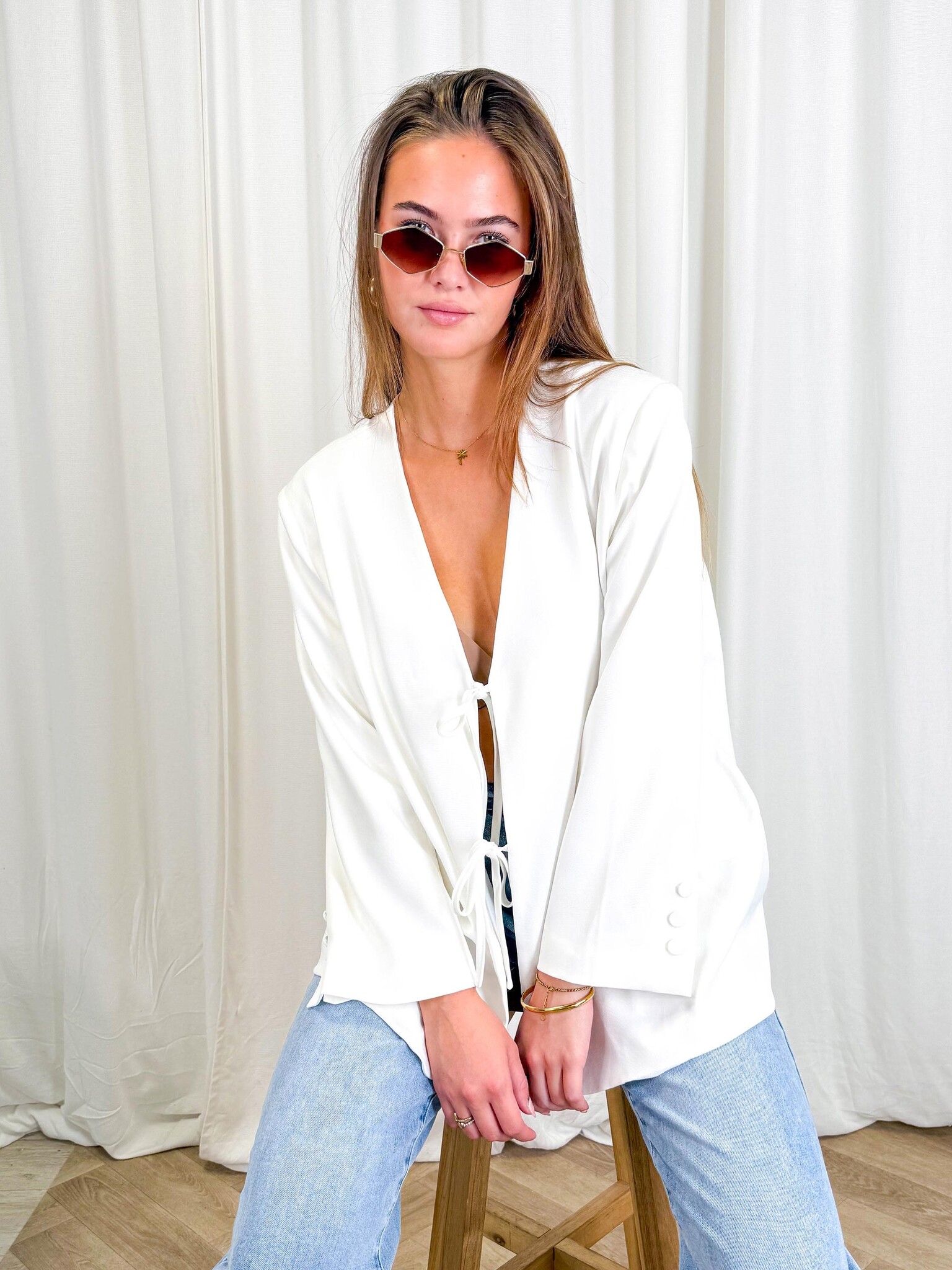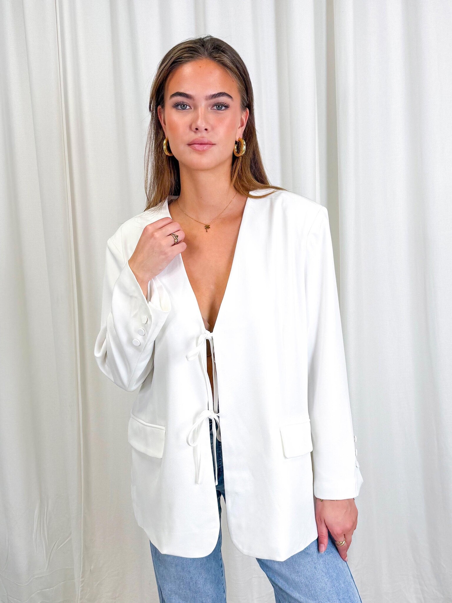 Recente artikelenBekijk productStrikjes Blazer - WitWitte blazer met strikjesDeliverytimeEUR 15,00EUR 49,99