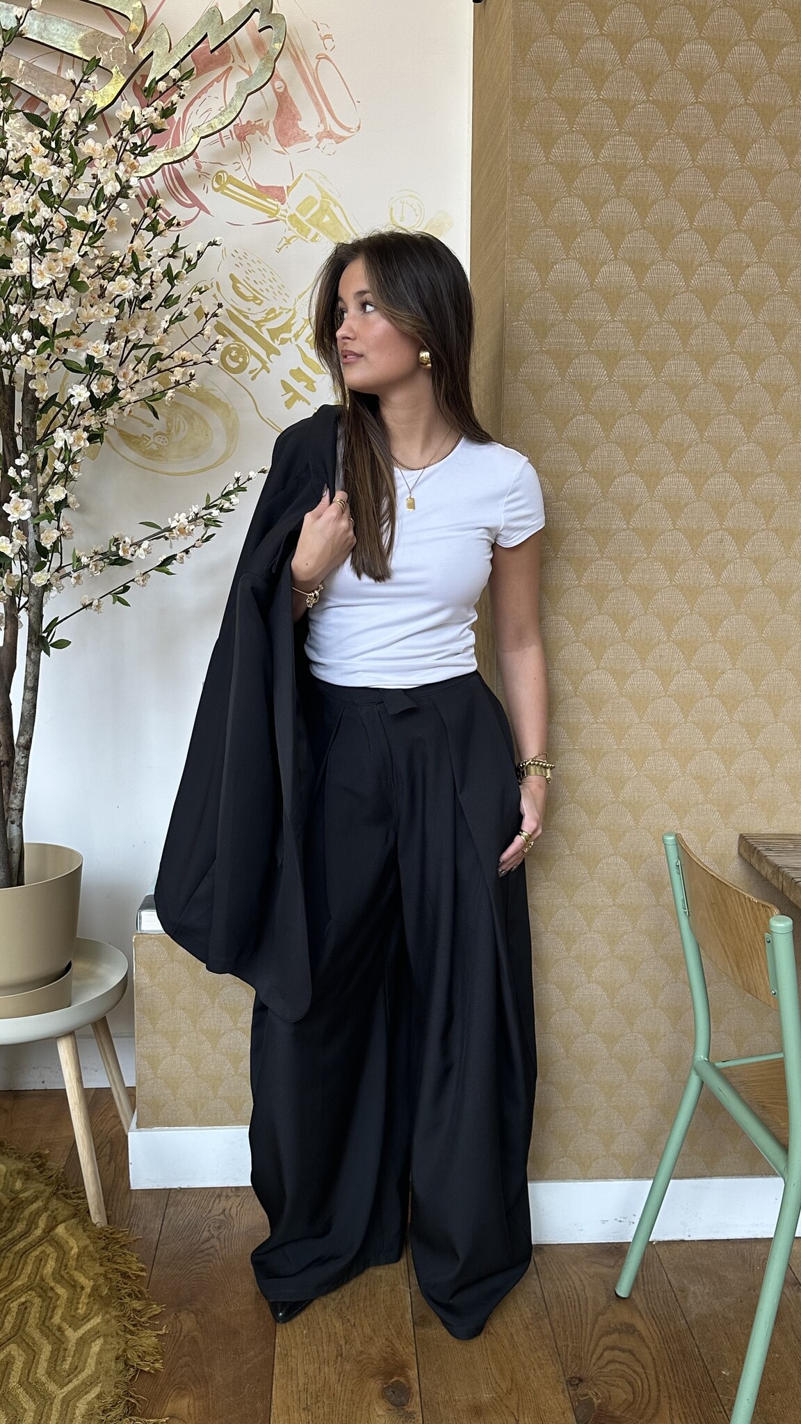Zwarte plooien pantalon