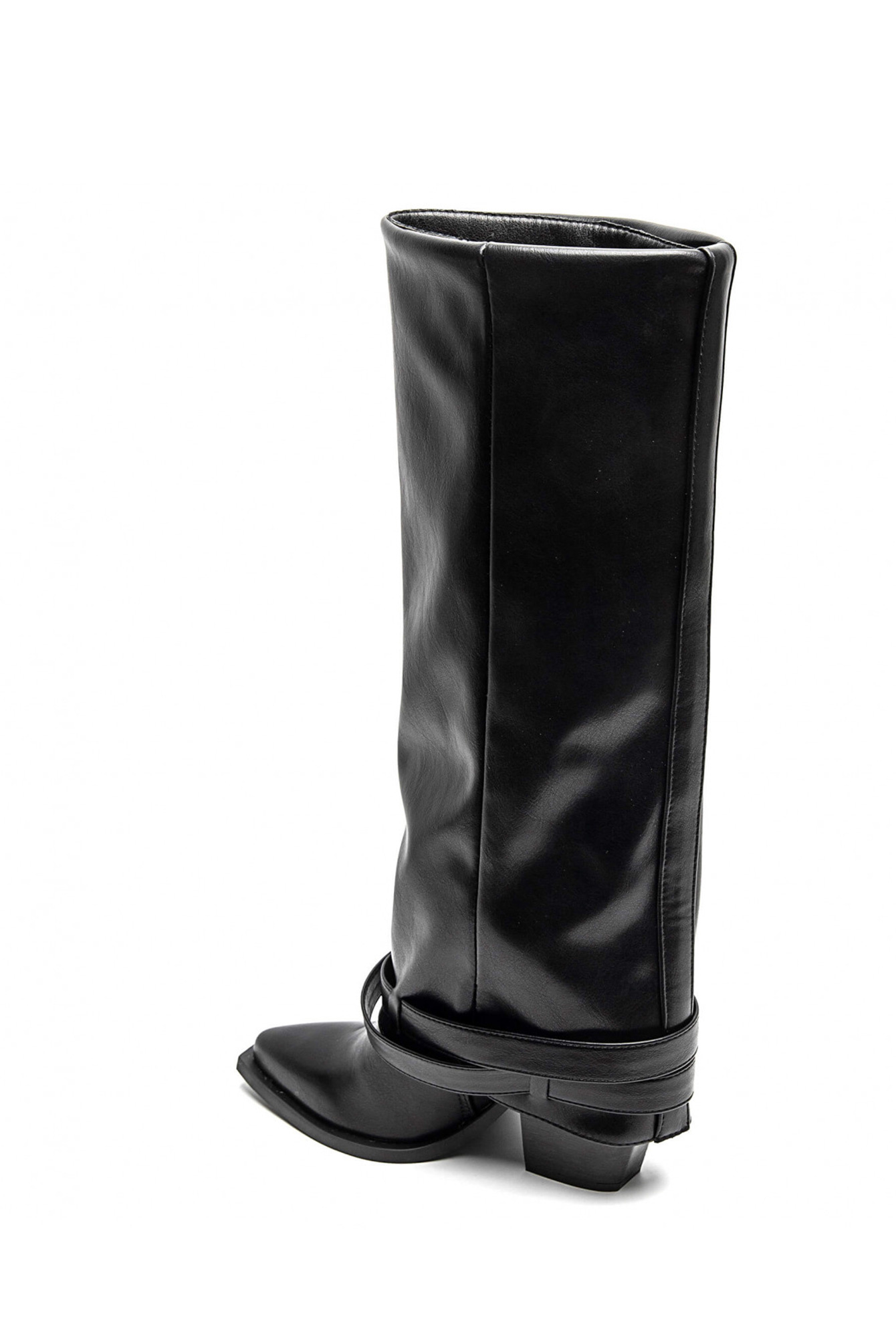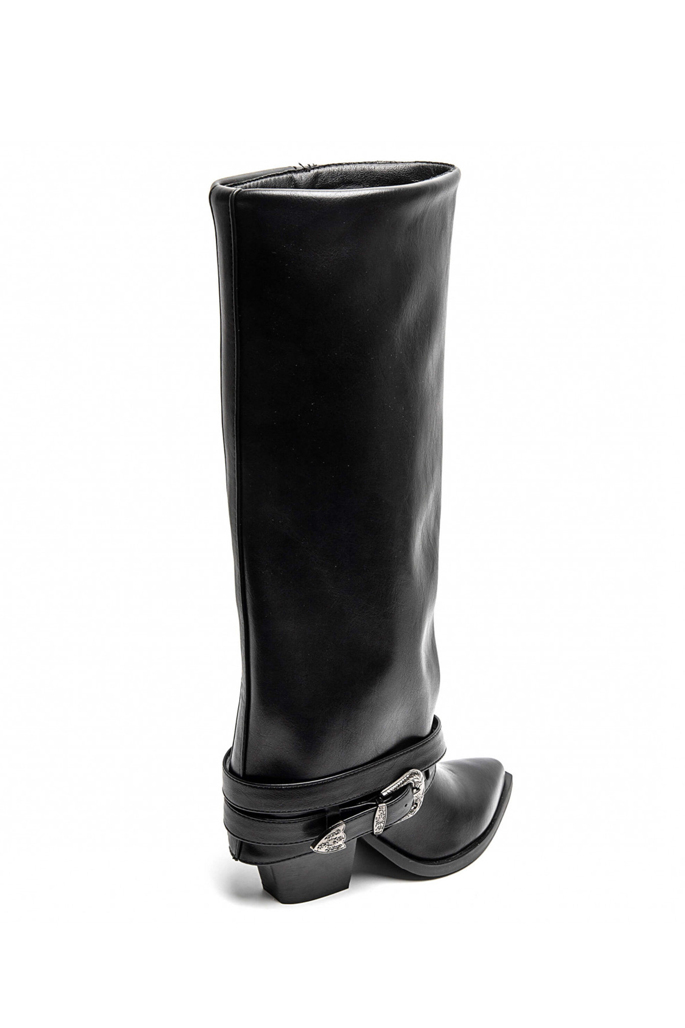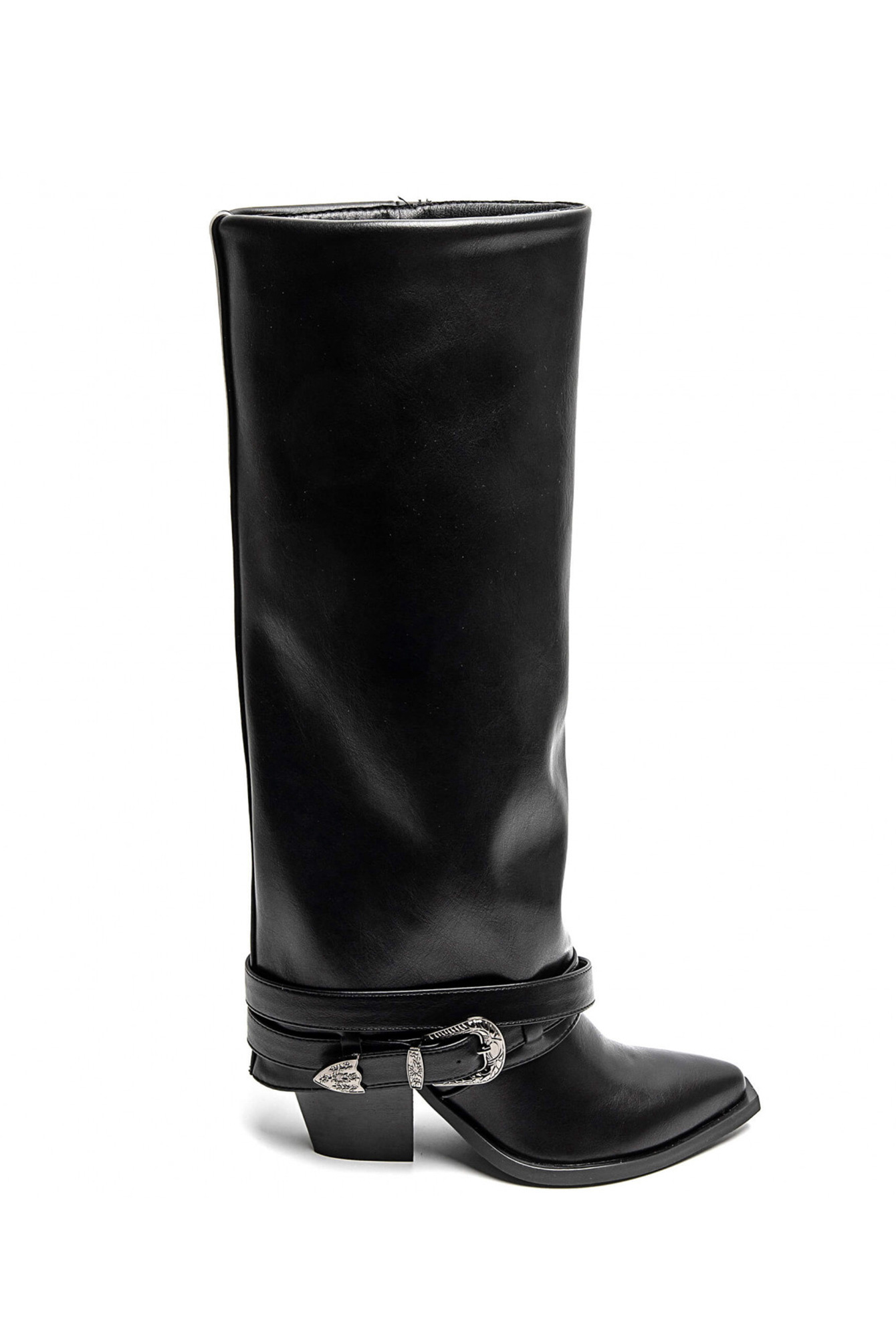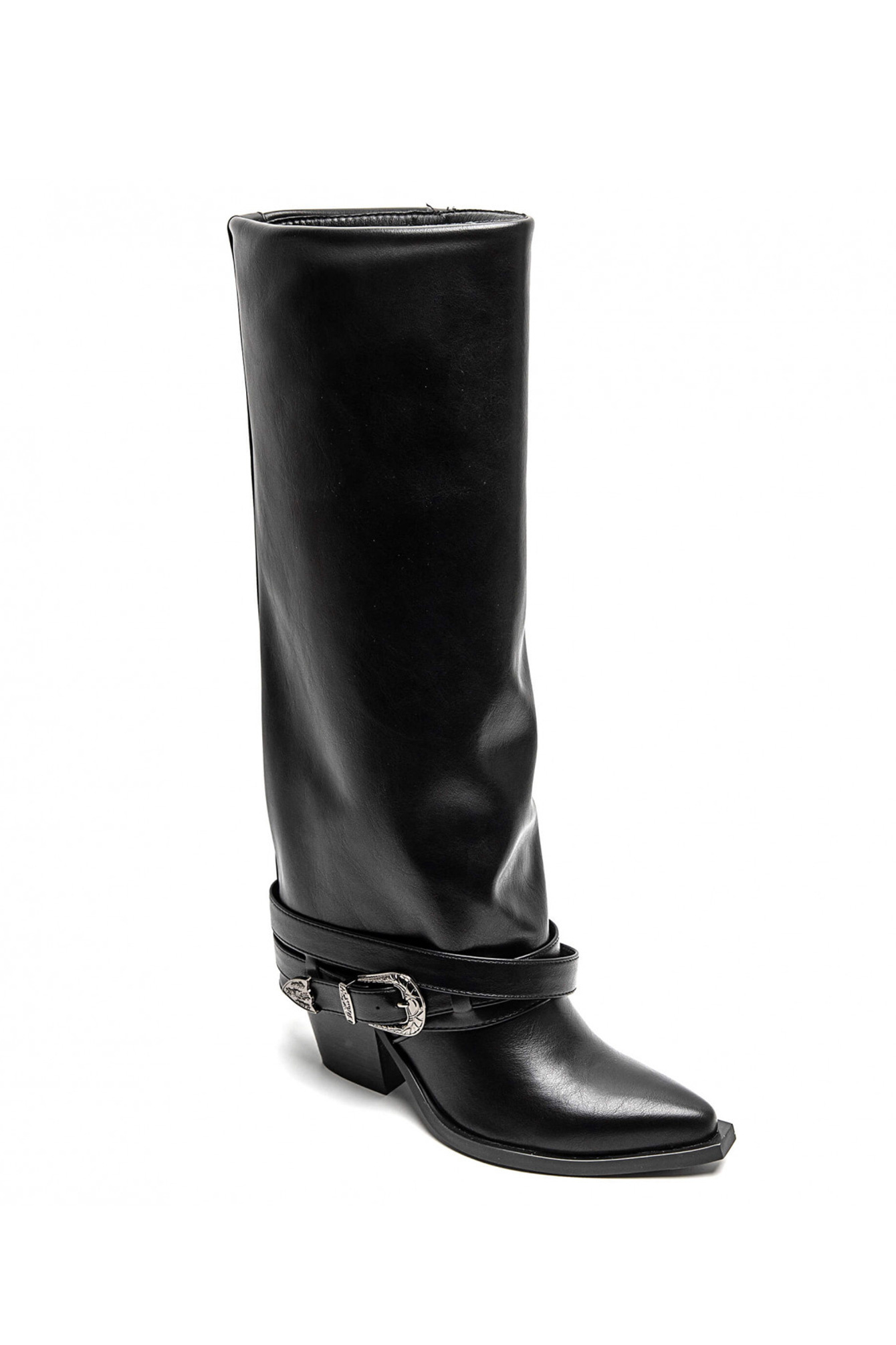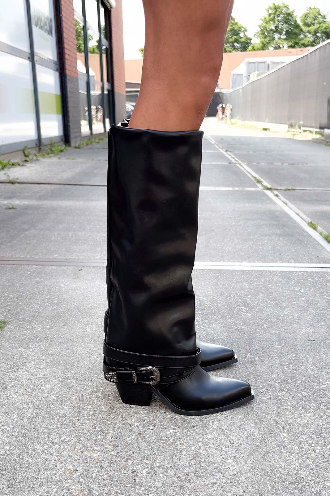 Deze laarzen met leather-look finish stralen klasse uit, met een moderne twist dankzij de puntige neus en de stevige blokhak die niet alleen elegant oogt, maar ook zorgt voor stabiliteit en draagcomfort. De twee decoratieve riemen met gesp geven deze laars een stoere, modieuze uitstraling.