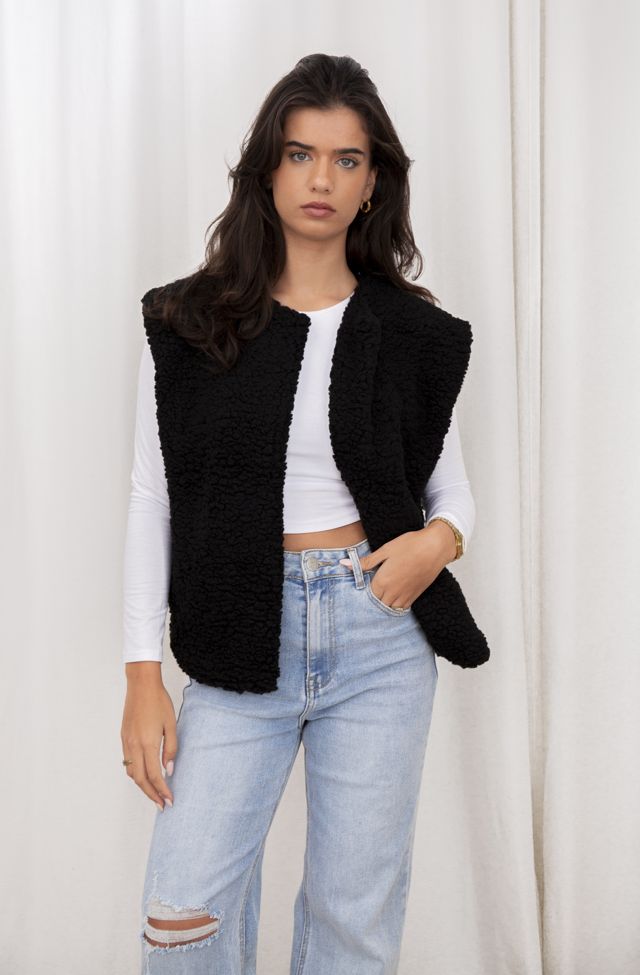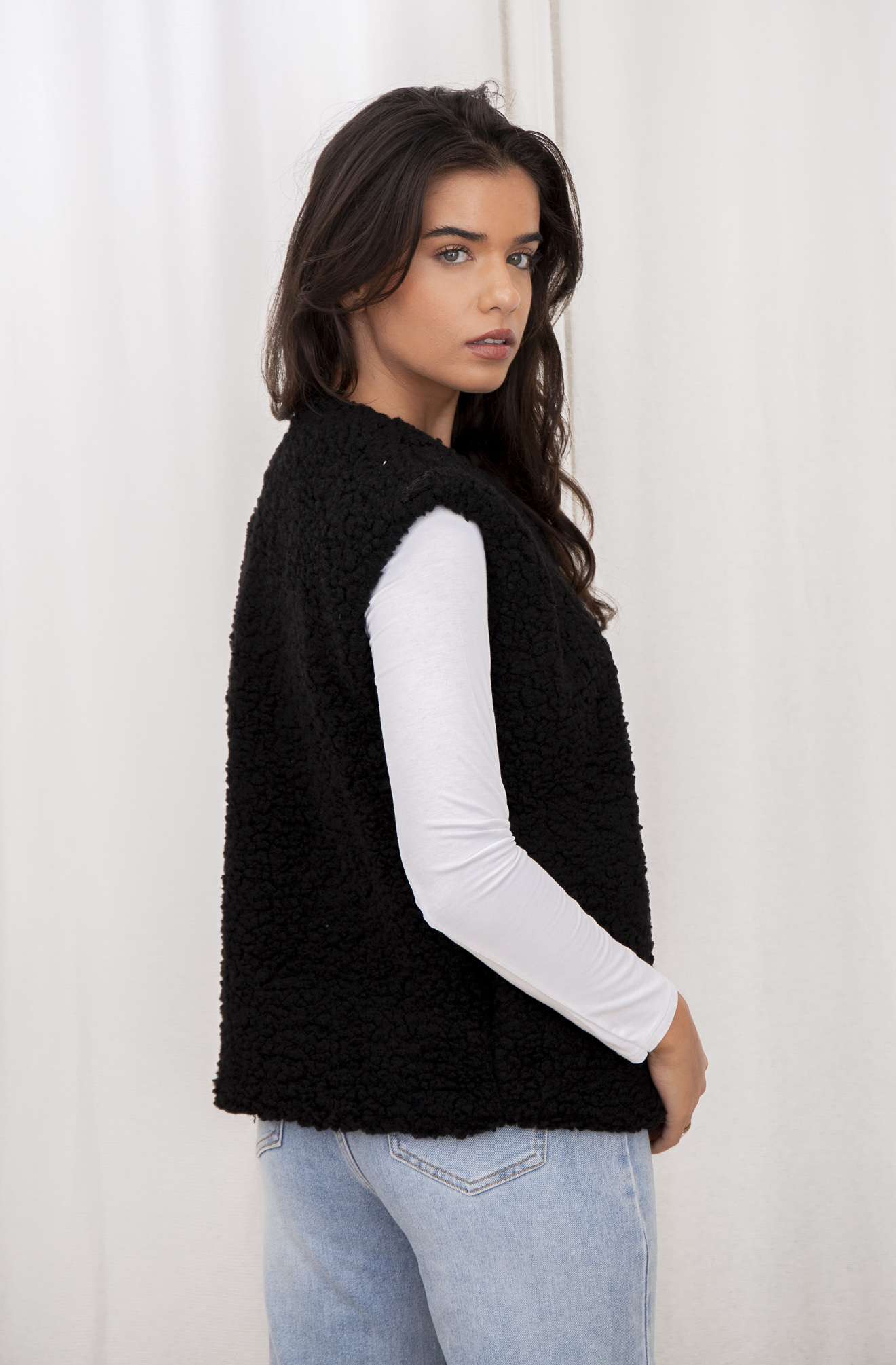 Als jij zoekt naar elegant, maar ook wat snoezigs, dan is dit de jas voor jou. Deze teddy gilet is ook perfect voor de wat frissere dagen en als je er een jas overheen doet heb je alsnog een geweldige outfit. Combineer deze leuke zwarte gilet met werkelijk alles!